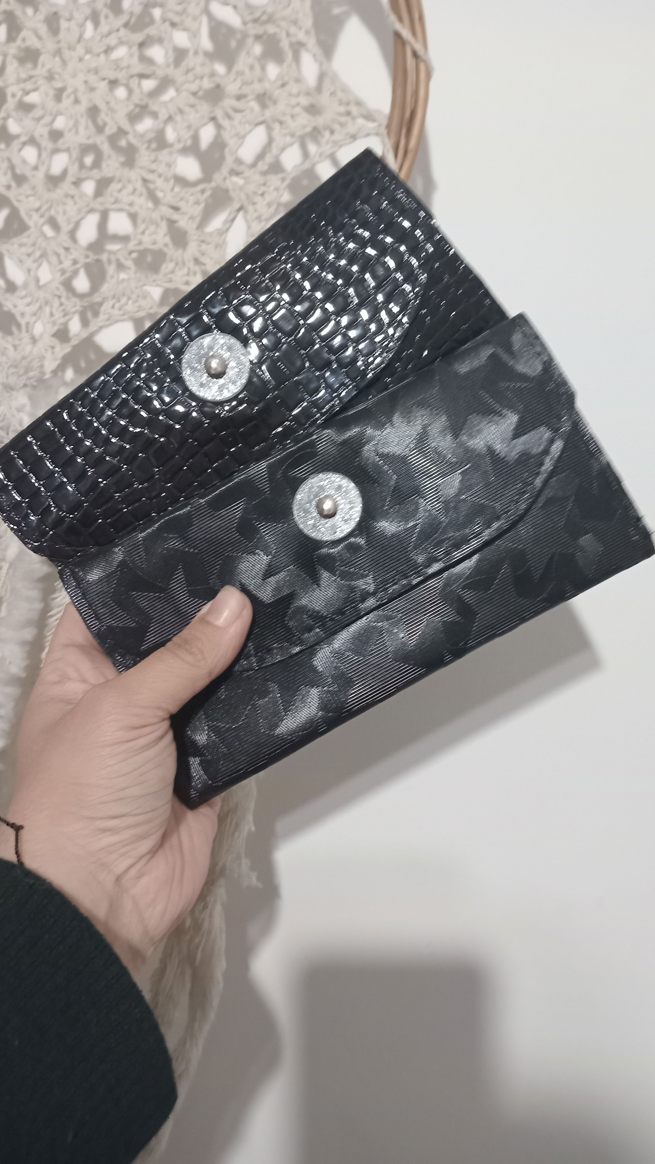 Billetera realizadas en cuero biodegradable, con 6 compartimientos para tarjetas y dos para billetes y un bolsillo para monedas.